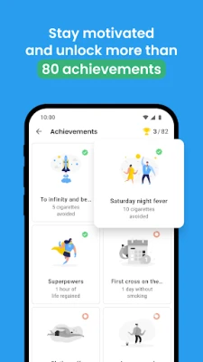 🏆 Thành tích: động lực của bạn để bỏ thuốc lá: Giống như bất kỳ nhiệm vụ nào khác trong cuộc sống, việc bỏ thuốc lá sẽ dễ dàng hơn khi bạn chia nhiệm vụ thành những bước nhỏ, có thể quản lý được. QuitNow cung cấp cho bạn 70 mục tiêu dựa trên số lượng thuốc lá bạn đã tránh, số ngày kể từ điếu thuốc cuối cùng và số tiền bạn đã tiết kiệm được. Điều này có nghĩa là bạn có thể bắt đầu ăn mừng thành tích của mình ngay từ ngày đầu tiên.
