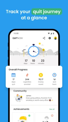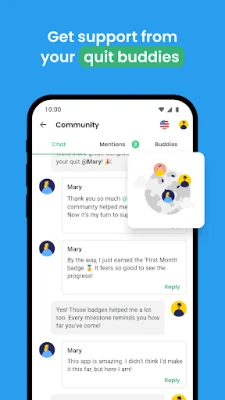 💬 Cộng đồng: trò chuyện với những người bỏ thuốc: Khi bạn bỏ thuốc lá, việc giữ mình trong môi trường không khói thuốc rất quan trọng. QuitNow cung cấp một trò chuyện đầy những người đã nói lời tạm biệt với thuốc lá, giống như bạn. Dành thời gian với những người không hút thuốc sẽ làm cho hành trình của bạn trở nên dễ dàng hơn.