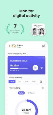 Start by downloading this Qustodio Parental Control App onto your device. Then download the Kids App Qustodio companion app onto your child’s devices. Together, the apps allow you to seamlessly manage your child’s daily screen time allowance on linked mobile, tablet or desktop devices across platforms including Android, iOS and other major operating systems.