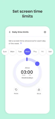 - Screen time limits: Automatically blocks the device after the set time has passed.