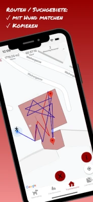 - Routen und Suchgebiete den passenden Hunden zuordnen und sogar kopieren, um Zeit zu sparen und verschiedene Szenarien zu üben.