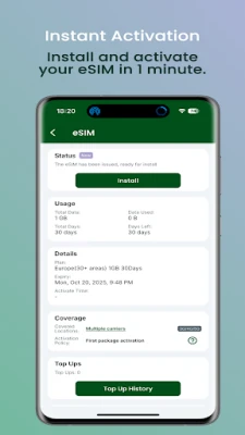- No physical SIM – Just scan a QR or install in-app and you're ready.