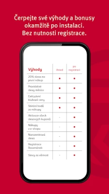 Už po stažení aplikace můžete využít některé výhody i bez registrace. Další exkluzivní slevy a benefity se vám zpřístupní po plné registraci.