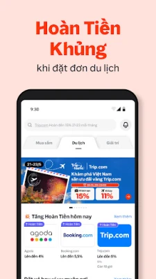 - Du lịch: Nhận Hoàn Tiền thật khi đặt khách sạn, vé máy bay, vé hoạt động trải nghiệm và các tiện ích du lịch khác tại Trip.com, Booking.com, Agoda, Traveloka, Klook, KKday, Vietnam Airlines, Vietjet Air, Be, Vé Xe Rẻ...