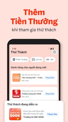 - Tham gia các thử thách hấp dẫn để nhận thêm tiền thưởng và quà tặng
