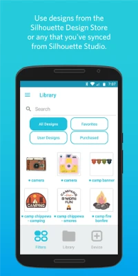 ● ACCESS YOUR LIBRARY Anything you've downloaded from the Silhouette Design Store or synced from Silhouette Studio will show up ready to use.