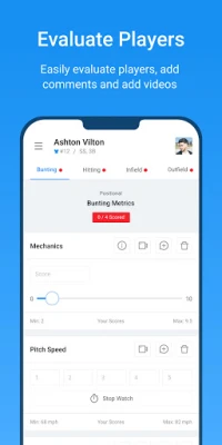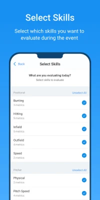 Once players have been added, and an event is created, the evaluators can use the app from the Google Play Store to input athlete data.