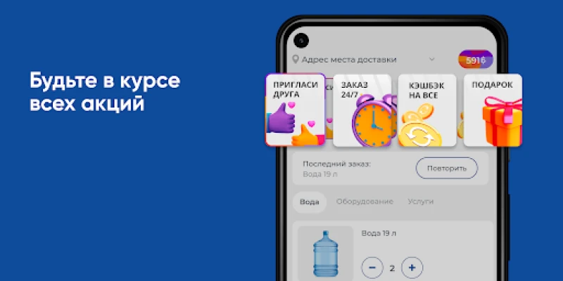 Скачайте приложение SOUM на свой смартфон и делайте заказ воды 24/7. Вы сможете повторять заказ нажатием одной кнопки, видеть всю историю покупок и быть в курсе всех акций компании.