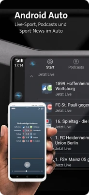 Das funktioniert auch im Auto: Mit Android Auto kannst du dein App-Erlebnis ins Auto verlängern. Genieße Live-Sport beim Fahren, tauche in unsere Podcasts ein oder informiere dich aktuell über die wichtigsten Sportereignisse währen du unterwegs bist.