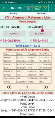 4. The most effective approach for handling full road, bridge or railway alignments is to create the complete alignment in Civil 3D, export it as a LandXML file, and then import it into the field calculation setup. This program accepts Civil 3D LandXML alignment data and calculates the Local Chainage & Offset <=> Global Easting & Northing vice versa. Also, this program can give multiple results for a given start chainage and an interval within the curve.