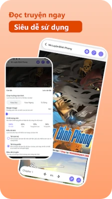 Giao diện dễ dàng sử dụng. Tự động lưu lịch sử đọc, dễ dàng tiếp tục theo dõi truyện.