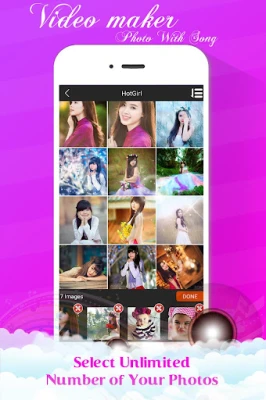 ✓ Chọn ảnh tạo video từ bộ sưu tập gallery. Bạn có thể chọn tối đa tới 60 ảnh