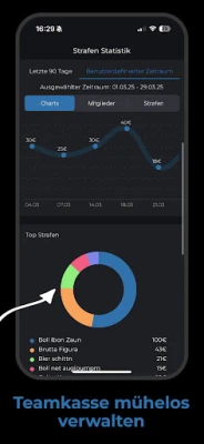 Wer ist die unbestrittene Nummer 1 auf der Strafliste? Welche Strafen werden am häufigsten ausgesprochen? Mit TeamCaptain hast du Finanzen, Statistiken und Aufgaben immer im Blick – übersichtlich, transparent und unkompliziert.