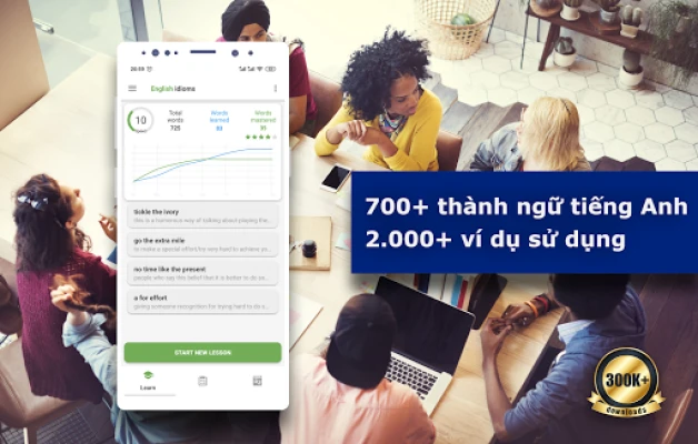 Có rất nhiều thành ngữ trong tiếng Anh. Vì chúng không thể được dịch nguyên văn, bạn chỉ cần học nghĩa của chúng và ghi nhớ chúng. Trong ứng dụng này, chúng tôi đã thu thập hơn 700 thành ngữ và cụm từ lóng tiếng Anh thông dụng nhất để học và sử dụng.