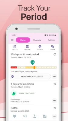 Với ứng dụng lịch kinh nguyệt của chúng tôi, bạn có thể nhập ghi chú hàng ngày và theo dõi các triệu chứng PMS, tâm trạng, giao hợp, lưu lượng kinh nguyệt, kết quả xét nghiệm rụng trứng, v.v.