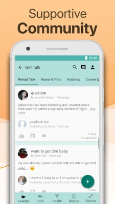 Điểm phân biệt Lilly với các ứng dụng theo dõi kỳ kinh khác là cộng đồng phụ nữ có tên là Diễn đàn Girl Talk với hàng nghìn thành viên. Hãy trở thành một phần của cộng đồng phụ nữ hỗ trợ của chúng tôi và tham gia vào các cuộc trò chuyện của Girl Talk.