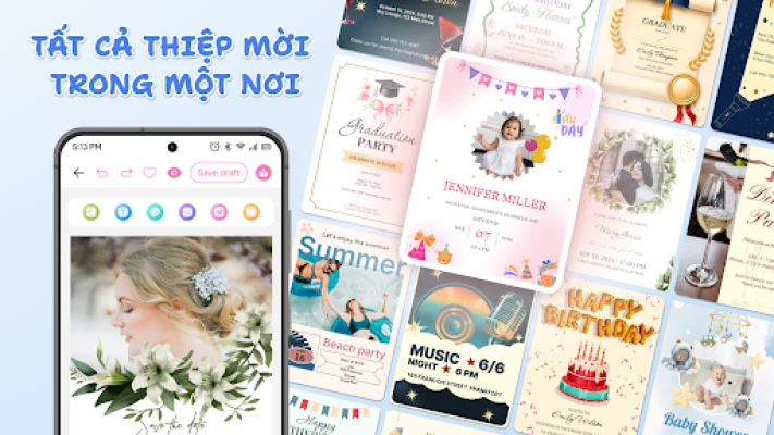 📍Làm cho bữa tiệc sinh nhật, lời mời chào em bé hoặc thiệp chúc mừng đám cưới của bạn trở nên nổi bật và thể hiện tình cảm, sự chân thành của bạn đến ngươời nhận trong từng chi tiết với ứng dụng Thiệp Chúc Mừng & Sinh Nhật. Hãy tải xuống ứng dụng và trải nghiệm ứng dụng Thiệp Chúc Mừng & Sinh Nhật, giúp bạn tự do bày tỏ và chia sẻ cảm xúc của mình với những người thân yêu trong các bữa tiệc.