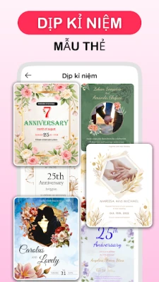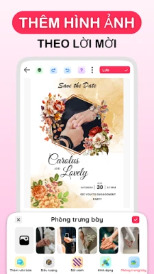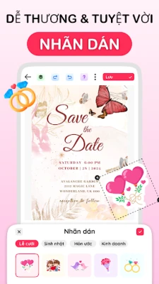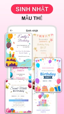 Từ sinh nhật đến sự kiện kinh doanh, ứng dụng Công cụ tạo thiệp mời và Thiết kế thiệp cho phép bạn tạo lời mời kỹ thuật số được cá nhân hóa. Lưu thiết kế của bạn và chia sẻ chúng ngay lập tức qua ứng dụng nhắn tin, email hoặc phương tiện truyền thông xã hội.