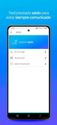 * Pedir Saldo: Podés pedir prestado a Personal o a un amigo para que siempre estés comunicado.
