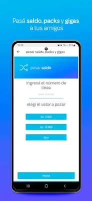 * Pasar Saldo: Podés pasar saldo o regalar packs a la persona que quieras.