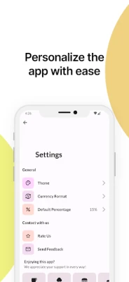 - Set your preferred default tip percentage, so you don't have to manually input the same percentage every time you use the app 😌