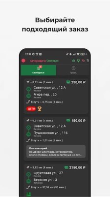 Водитель может начать смену из любого района в удобное время. Обработка и распределение заказов происходят в автоматическом режиме.