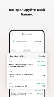 В приложении можно узнать детализацию баланса, а также пополнить основной счет и вывести с него средства (доступно не для всех служб).