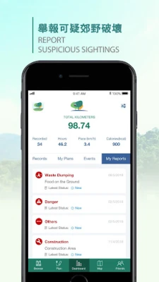 TrailWatch是香港首個給合保育郊野及行山運動的手機程式。你可以利用TrailWatch的GPS功能,實時記錄行山活動。若遇到任何破壞郊野的活動,更可以即時舉報。你亦可計劃、記錄和分享行山活動,並搜索和下載多條香港的行山路線。