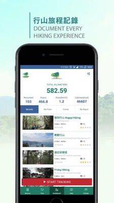 行山記錄 – 你的個人行山全記錄,配備重要資訊包括高度、時間、距離、速度及卡路里消耗量等。