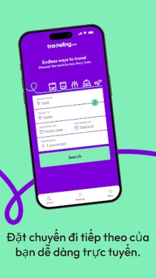 Không còn cảnh cuống cuồng tìm vé vào phút chót hay vật lộn với các hệ thống đặt vé phức tạp. Với Traveling.com, bạn có thể tìm kiếm, đặt vé và xác nhận chuyến đi của mình chỉ với vài cú chạm. Chọn từ hàng nghìn tuyến đường cho xe buýt, tàu hỏa, phà và xe minivan – tất cả trong một ứng dụng duy nhất.