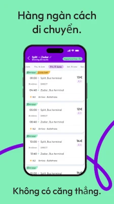 Giá vé, thông tin về nhà cung cấp, đánh giá của người dùng, các tiện ích trên tàu – tất cả đều trong tầm tay bạn. Dù bạn đang đặt vé tàu hay lên kế hoạch cho chuyến đi bằng xe buýt – mọi thứ đều rõ ràng và dễ dàng. Không còn cảnh mở vô số tab hay cảm giác bối rối – chỉ còn lại những thông tin bạn cần.