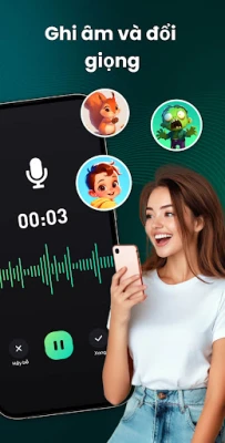 Ghi âm rõ ràng, áp dụng nhiều hiệu ứng giọng và lưu lại bản ghi chỉnh sửa ở chất lượng HD — cực dễ! Với trình ghi âm và chỉnh sửa, bạn có thể tạo ra giọng hài để trêu bạn bè hoặc chia sẻ lên mạng xã hội để thể hiện cá tính riêng. Mỗi cuộc trò chuyện sẽ trở nên thú vị và đầy bất ngờ!