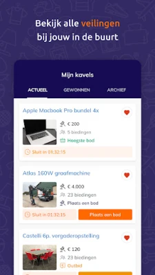 Gebruik deze App om direct overbiedingsnotificaties te ontvangen, wanneer u niet meer de hoogste bieder bent.