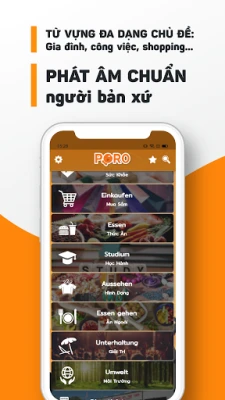 Ứng dụng này phù hợp cho trình độ sơ cấp, sơ - trung cấp, trung cấp và trung - cao cấp với hơn 6000 từ vựng cùng hình ảnh minh họa và phát âm chuẩn người bản xứ. 10 chủ đề chính được chia thành 145 bài học với nhiều từ vựng ở nhiều lĩnh vực khác nhau sẽ làm vốn từ của bạn trở nên phong phú đáng kể. Bắt đầu với những từ và chủ đề cơ bản và nhớ học từ mới mỗi ngày! Ôn tập những từ và chủ đề đã học với flashcard, bài kiểm tra, bài nghe và thử thách bản thân với những trò chơi thú vị của PORO!