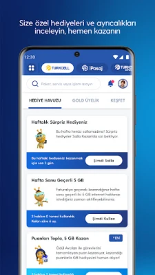 Ayrıca kullanımı ücretsiz olan Turkcell uygulamasından Turkcell kullanıcısı olan sevdikleri için hediye TL ve paket yükleyebilir, başvuru işlemlerini ve takibini gerçekleştirebilirler. Turkcell faturası ödeyebilir, Turkcell uygulamalarına erişebilirler.