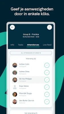 ✔ Eenvoudig aanwezigheden doorgeven, inschrijven, communiceren met je team, facturen betalen, een reservatie maken, … waar en wanneer je maar wil.