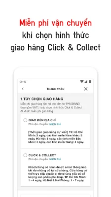 - Chọn tùy chọn giao hàng hoặc đến lấy tại cửa hàng