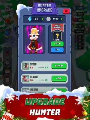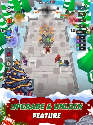 ► Diverse Levels: Explore unique, carefully designed stages, each requiring specific tactics to conquer. Take on formidable bosses with extra rewards waiting for skilled hunters, now infused with a festive twist.