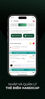 + Tùy theo thói quen, độ tuổi, các golfer sẽ tìm thấy sự tiện lợi trong cách nhập thẻ điểm: Chụp score card gửi vể, Nhập nhanh theo hố hoặc nhập chi tiết từng hố và từng cú đánh;