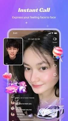 Bạn có thể mời một người bạn bắt đầu trò chuyện video và cuộc gọi thoại thời gian thực. Bạn sẽ có những trải nghiệm tuyệt vời với những tương tác thú vị như sử dụng các nhãn dán khác nhau và gửi cho nhau những món quà ảo.