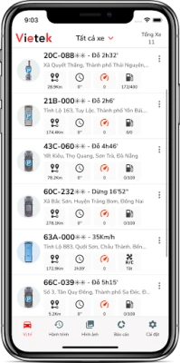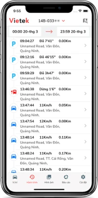 Ứng dụng Giám sát hành trình được cung cấp bởi Vietek có các chức năng: