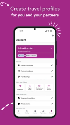 Save your payment information in your profile to book flights easier, faster and safer.
