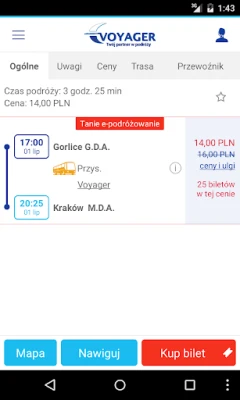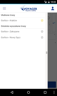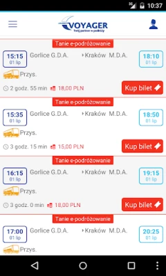 Aplikacja pozwala kupować bilety oraz wyszukiwać połączenia realizowane przez Voyager Transport Sp. z o.o.