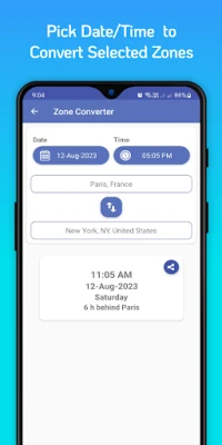 II. Edit/Convert and compare Time Zones to your desired time zone so drag seek bar thumb to compare Time Zones i.e. what is the time in New York when it is 9:00 AM in Paris?