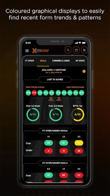 We got you covered...simply clicking on the fixture will reveal over 130 more statistics covering goals, Head2Head, corners, cards and Half Time stats to help you get on the right in-plays and build winning game builders. Graphical displays allows users to easily visualise the last 10 games form to find any trends and patterns. Use the stats to find on football with a higher chance to win at football with XBet Edge!