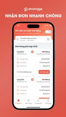 Với giao diện đơn giản và dễ sử dụng, Ghép Hàng đem lại trải nghiệm tuyệt vời cho tài xế vận chuyển hàng hóa.