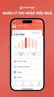 Ngoài ra, Ghép Hàng cũng cung cấp công cụ quản lý thu nhập hiệu quả, giúp tài xế theo dõi và kiểm soát thu nhập một cách linh hoạt.