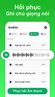 Ứng dụng khôi xem tin nhắn đã xóa cho phép bạn khôi phục ghi chú âm thanh và ghi chú thoại đã xóa một cách dễ dàng. Dễ dàng khôi phục các ghi chú thoại và ghi chú âm thanh quan trọng, đảm bảo rằng bạn không bao giờ mất các bản ghi âm có giá trị nữa. Tính năng này giúp bạn dễ dàng khôi phục tất cả nội dung âm thanh cần thiết.