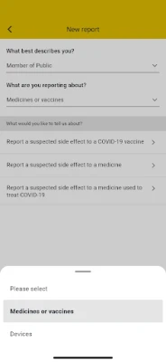 > Report a suspected side effect to a medicine (including vaccines, herbal products and homeopathic remedies)